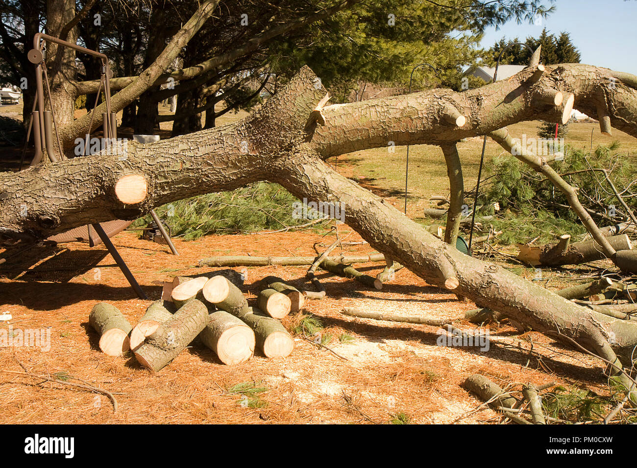 Fallen Tree Being Cut Up In Large Pieces By Chainsaw Stock Photo Alamy from c8.alamy.com This is how i cut it down. You can make a homemade 'cradle' that holds a whole bunch of logs from sturdy construction lumber (2 by 4). When you cant reach through with one cut, then move to the opposite side. I cut about a 30 degree angle cut starting at the bottom working away from the tree. How do you fell a tree? Can i use a fallen tree for firewood? Start at the top and work your way back. More images for how to cut up a fallen tree »